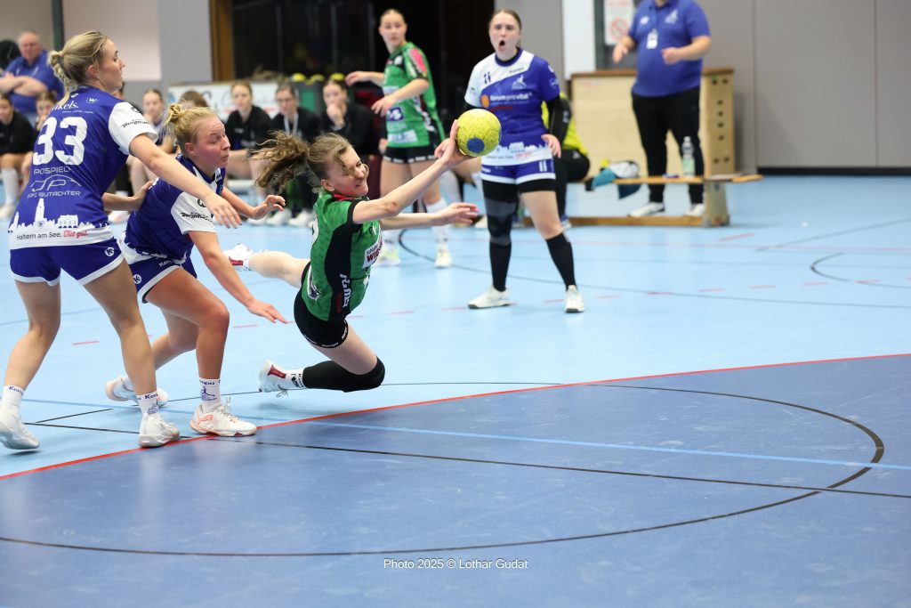 Dass es gegen einen starken Gegner wie den Spitzenreiter so nicht weitergehen würde, musste man befürchten, und in der Tat eröffnete der HSC den zweiten Durchgang mit drei Treffern in Folge zum 8:10. Aber anders als in einigen der zurückliegenden Partien ließ sich der HTV nicht in die Knie zwingen. Er kämpfte unverdrossen, kam immer wieder zum Ausgleich und ließ auch nach dem 18:20 (55.) nicht locker. Beeke Scholz, Klaudia Kaminska und schließlich Laura Hausherr wendeten das Blatt, und auch wenn es nicht zum Sieg langte: Dieser Punktgewinn sollte der Mannschaft viel Selbstvertrauen für die nächsten Wochen geben.