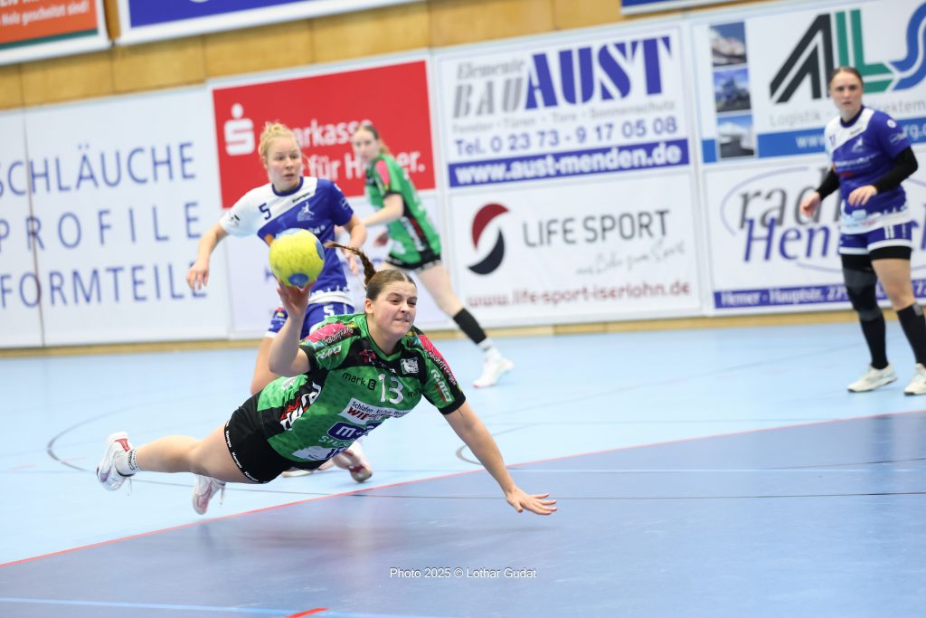 Als Laura Hausherr 42 Sekunden vor dem Ende per Siebenmeter zum 21:20 für den HTV traf, zeichnete sich die faustdicke Überraschung gegen den ungeschlagenen Tabellenführer ab, doch der schlug sechs Sekunden vor der Sirene ebenfalls per Siebenmeter noch zurück. Dennoch: Unserer Mannschaft gebührt ein großes Kompliment für eine couragierte kämpferische Leistung, für die es auch ein dickes Lob von Trainerin Vanessa Rohlfs gab. Stark war die Auftaktphase der Partie, als der HTV klar den Ton angab und immerhin mit 7:3 (18.) führte. Ganz stark: Torhüterin Marie Remmert, die die gegnerischen Angreiferinnen phasenweise verzweifeln ließ. Bis zur Pause hatte Haltern aber wieder aufgeschlossen, was sich unsere Mannschaft wegen etlicher technischer Fehler auch selbst zuschreiben musste. Eine höhere Führung beim Gang in die Kabine wäre in jedem Fall möglich gewesen.