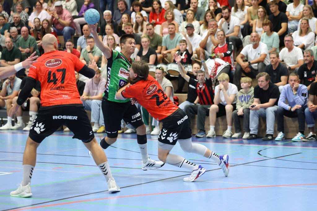 Geschlagen war unsere Mannschaft aber noch längst nicht. Nach dem Wechsel kam sie auf 20:18 (35.) und 22:20 (39.) heran, aber der große Unterschied zwischen den Kontrahenten war an diesem Abend die Effizienz in Abschluss. Die routinierten Mendener nutzten ihre Möglichkeiten konsequent, der HTV scheiterte mehrfach aus idealer Position an Kroker oder an Latte und Pfosten. Da war auch viel Pech im Spiel. Da passte es ins Bild, dass der ansonsten so starke Moritz Frenzel die beiden einzigen Siebenmeter für den HTV verwarf.