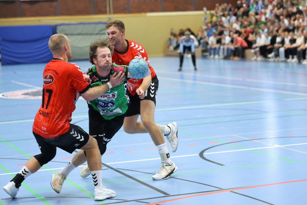 Den Gästen gehörte ganz klar die Anfangsphase. Sie standen stabil am eigenen Kreis, kombinierten flüssig und nutzten ihre Chancen. Eigenbrodt sowie Moritz Frenzel warfen eine 5:2-Führung nach sieben Minuten heraus, die Elias Lübbering hätte ausbauen können, aber er scheiterte frei am gegnerischen Kreis am starken Keeper Sven Kroker. Der brachte im weiteren Verlauf der Partie die Hemeraner Angreifer mehrfach zur Verzweiflung und hatte großen Anteil am Derbyerfolg seiner Mannschaft.
