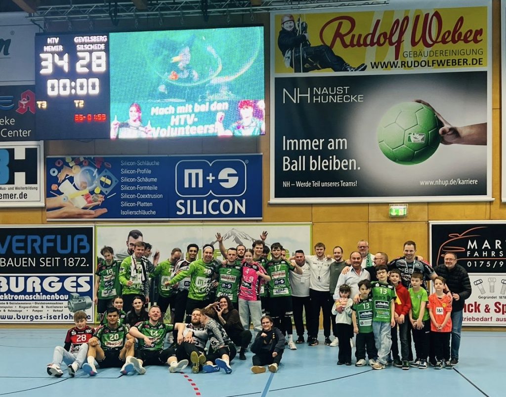 Herren-Regionalliga: HTV Hemer – HSG Gevelsberg/Silschede 34:28 (15:13). Mit dem vierten Sieg in Folge hat unsere erste Herrenmannschaft ihren Vormarsch fortgesetzt und muss sich endgültig keine Sorgen mehr um den Klassenerhalt machen. Es war keine Glanzleistung, wie auch Trainer Bosko Bjelanovic nach dem Spiel einräumte. Dazu gab es doch zu viele technische Fehler und ausgelassene Tormöglichkeiten. Aber die Abwehrarbeit stimmte über weite Strecken, und zu Beginn hatten die Angreifer hüben wie drüben einen schweren Stand. Als Elias Lübbering einen Siebenmeter zum 2:0 verwandelte, waren bereits siebeneinhalb Minuten gespielt. Danach leistete sich der HTV einige schwächere Phasen und gab in Überzahl eine 4:2-Führung aus der Hand (4:5). Es war ein etwas zähes Spiel in diesem ersten Durchgang, in dem zumindest Moritz Eigenbrodt zuverlässig traf. Doch er sah nach einem Zweikampf mit Gevelsbergs Topwerfer Wojtek die rote Karte. Das war natürlich eine Schwächung für unsere Mannschaft, die aber bis zur Pause einen verdienten Vorsprung herausgeworfen hatte. Erfolgreich war sie vor allem dann, wenn sie konsequent auf das Tempo drückte und schnelle Gegenstöße lief.