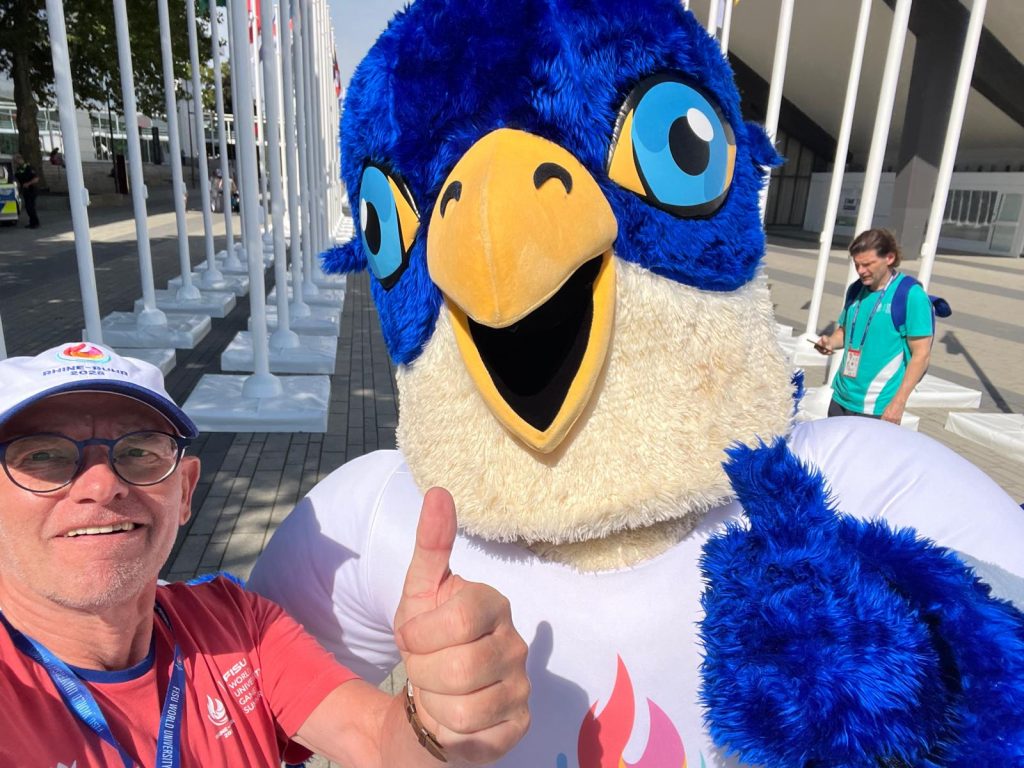 Es sollte ein Wechsel der Perspektive werden, ein Rollentausch und im Idealfall der reizvolle Blick hinter die Kulissen: Unser Vorstandsmitglied Michael Jochheim hatte sich als Volunteer für Rhine Ruhr 2025, die Word University Games, beworben, und er gehörte schließlich zu den über 8000 freiwilligen Helfern, die bei diesem großen Event im Einsatz waren. „Wir beim HTV haben ja auch viele Volunteers, ohne die unser Betrieb gar nicht laufen könnte. Ich fand es einfach spannend, einmal selbst eine solche Aufgabe zu übernehmen und die Organisation eines Großereignisses kennenzulernen.“
