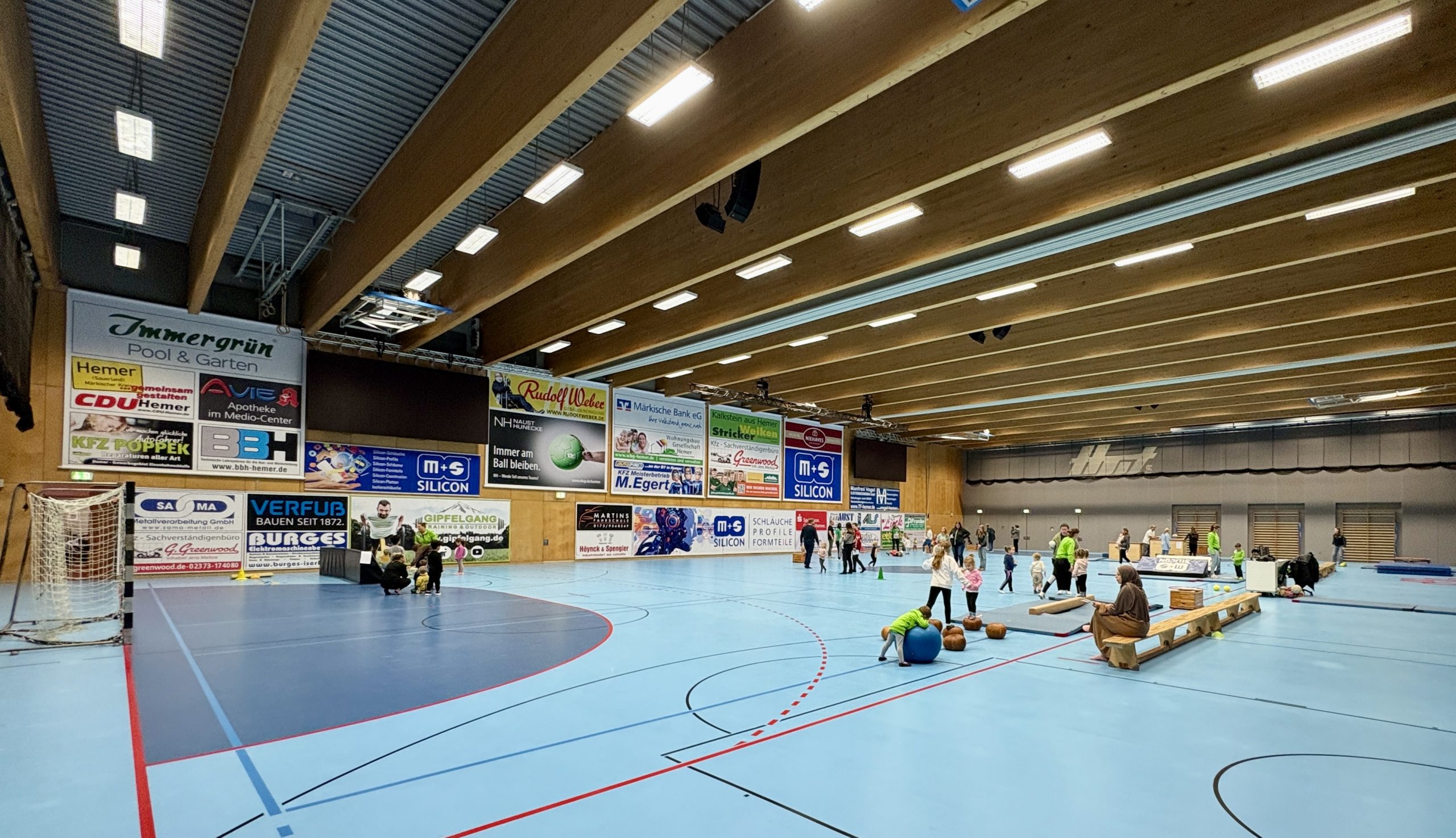 Am letzten Samstag nahmen rund 40 Kinder zwischen zwei und sechs Jahren im Grohe-Forum am Ballspiel-Kinderabzeichen (Kibaz) teil. Zehn Stationen mussten durchlaufen werden, und dabei ging es primär darum, Bewegungserfahrungen zu sammeln – mit und ohne Ball. So gab es beispielsweise eine Memory-Station, an einer anderen mussten Muster nachgelegt werden, oder aber es ging um Gleichgewichtsübungen. Begleitet von ihren Eltern durchliefen die Kinder die Stationen und hatten viel Spaß dabei. Aus den Reihen des HTV waren acht Helfer aus den Jugendteams sowie von den Lucky Frogs im Einsatz, die für einen reibungslosen Ablauf sorgten. Natürlich nutzte der Verein die Gelegenheit, um mit Flyern auf die eigenen Aktivitäten hinzuweisen, etwa mit den Trainingszeiten der „Wuselbären“. Diese Gruppe wendet sich speziell an Kinder im Alter zwischen drei und sechs Jahren.