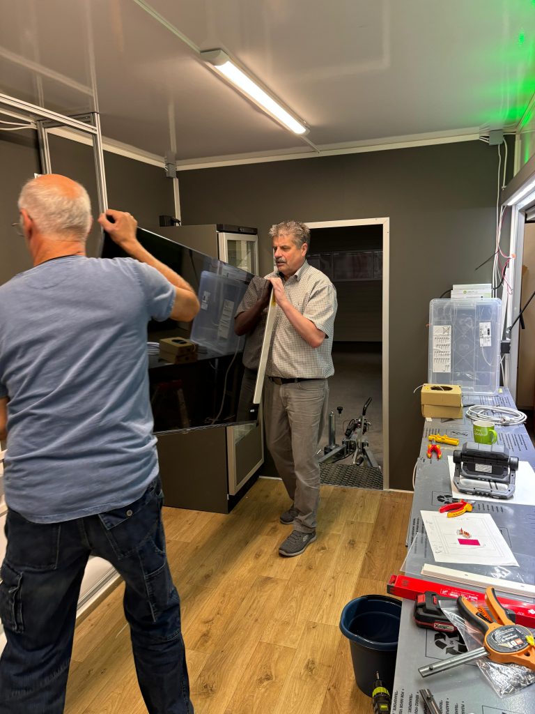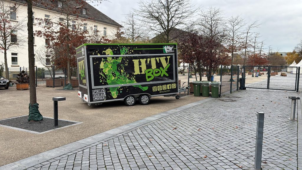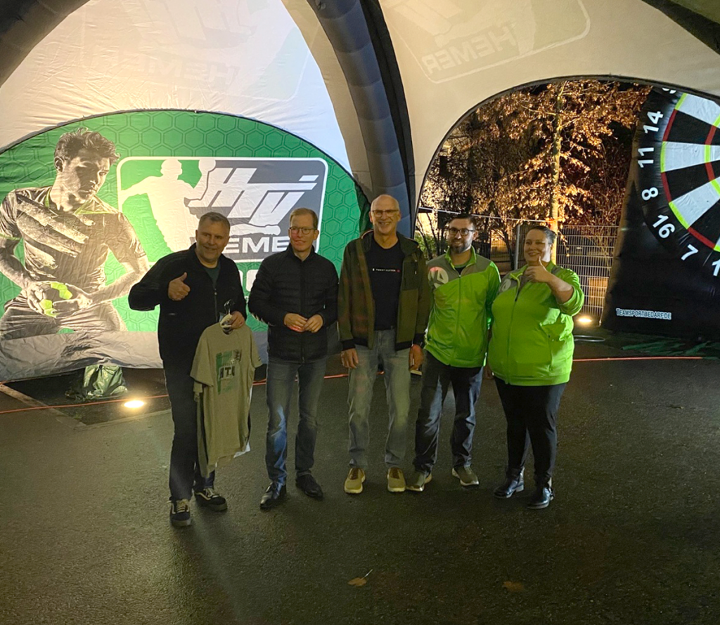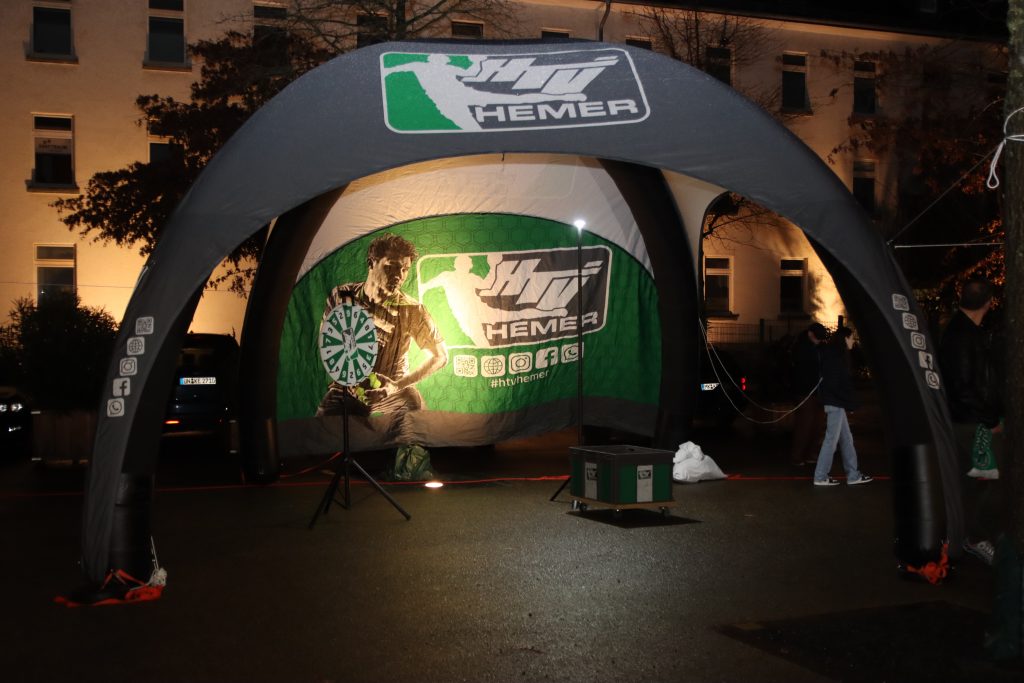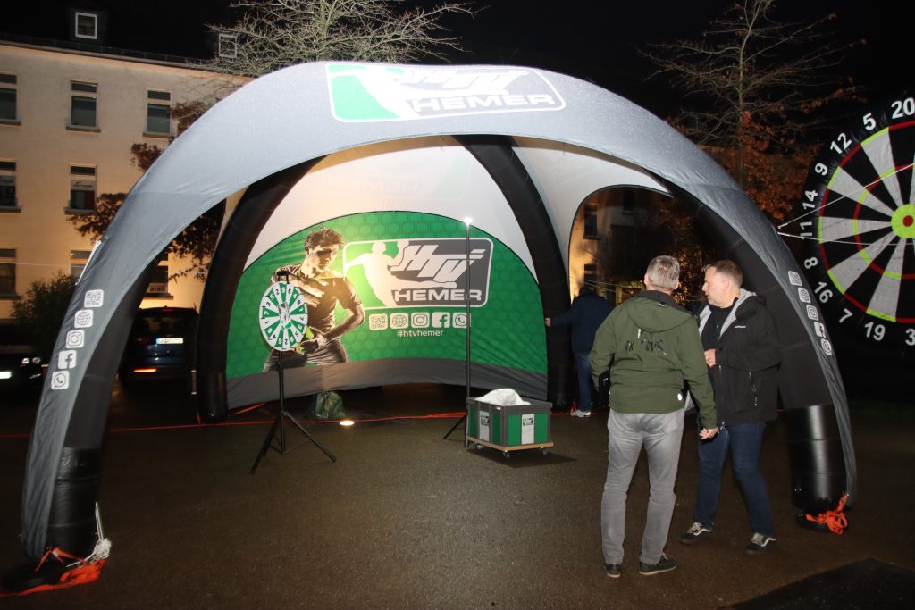 Am letzten Samstag war es endlich so weit. Die HTV-Box stand auf ihrem Platz vor dem Grohe-Forum und hat viele Blicke auf sich gezogen. Denn der Verkaufswagen präsentierte sich in einem tollen Outfit, und die Inneneinrichtung lässt erahnen, wie viele Arbeitsstunden dort investiert wurden. Hemers Bürgermeister Christian Schweitzer machte sich persönlich ein Bild vom neuen HTV-Equipment des Förderprojekts „HTV-Intermezzo“, zu dem auch das Zelt und die große Dartscheibe gehören und übergab dieses offiziell seiner Bestimmung. Das regnerische Wetter am letzten Samstag lud zwar nicht zum längeren Verweilen ein, aber wenn man an Handball in der wärmeren Jahreszeit denkt, dann dürfte diese neue Attraktion vor dem Grohe-Forum ihre Anziehungskraft nicht verfehlen.