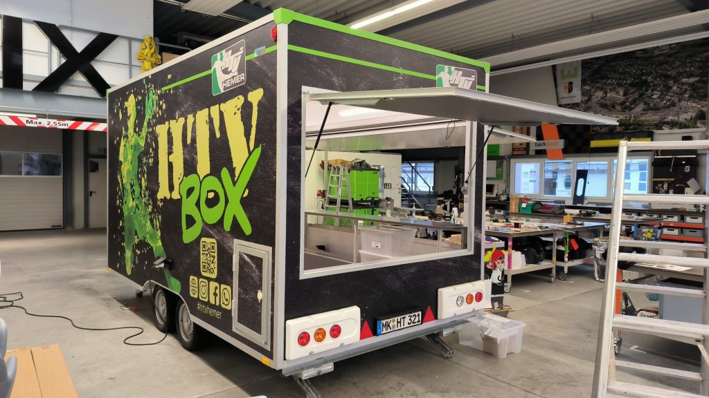 Auch wenn die Anschaffung nur dank der finanziellen Mittel aus einem speziellen Förderprogramm des Landes möglich war: Dass aus einem schmucklosen Verkaufswagen ein Hingucker wie die HTV-Box geworden ist, liegt am großen Engagement tatkräftiger HTVer. Zu nennen sind in erster Linie Anna Rübsam, Fabian Zedda-Rübsam, Jörg Koska und Hanno Stöwe, die zahllose Arbeitsstunden investiert haben, um dieses Vorzeigeobjekt zu schaffen. Ihnen, sowie allen anderen Helfern gebührt der Dank des gesamten Vereins.