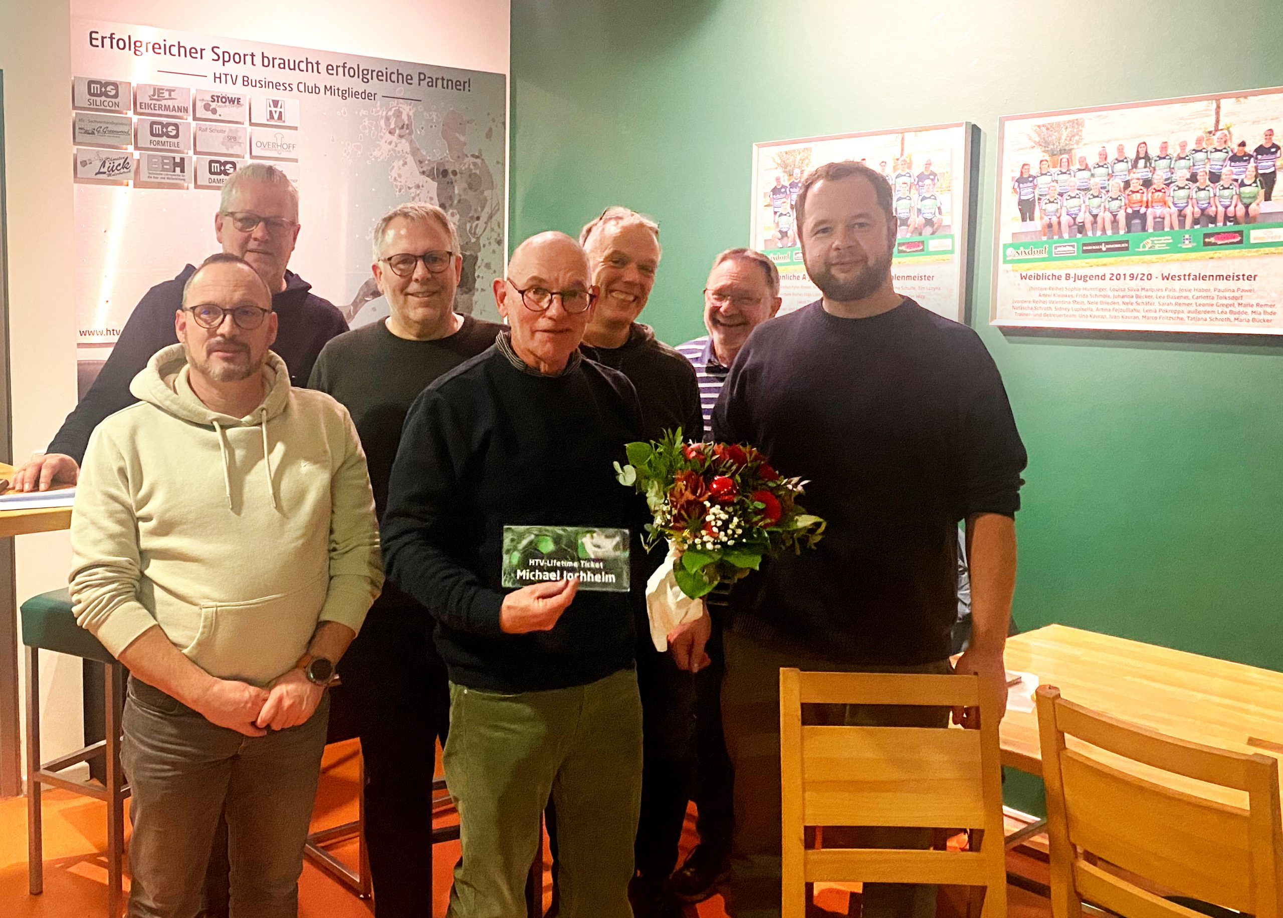 Ehe die Mitgliederversammlung endete, gab es noch eine verdiente Ehrung. Mit einem Blumenstrauß und einem „Lifetime-Ticket“ für den HTV wurde Michael Jochheim aus dem Vorstand verabschiedet.