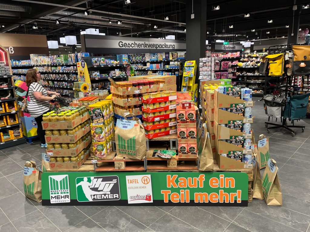 Der große Aufwand hat sich gelohnt. Die Aktion „Kauf ein Teil mehr“, die unser HTV gemeinsam mit Marktkauf durchführte, wurde ein voller Erfolg. Zahlreiche Kundinnen und Kunden des Marktes an der B7 zeigten großes Interesse an der Aktion, die zugunsten der Tafel in Hemer initiiert wurde. Auch die Reaktionen in den Social-Media-Kanälen bewiesen, dass dieses Projekt unseres Vereins großen Anklang gefunden hat und als absolut nachahmenswert angesehen wird.