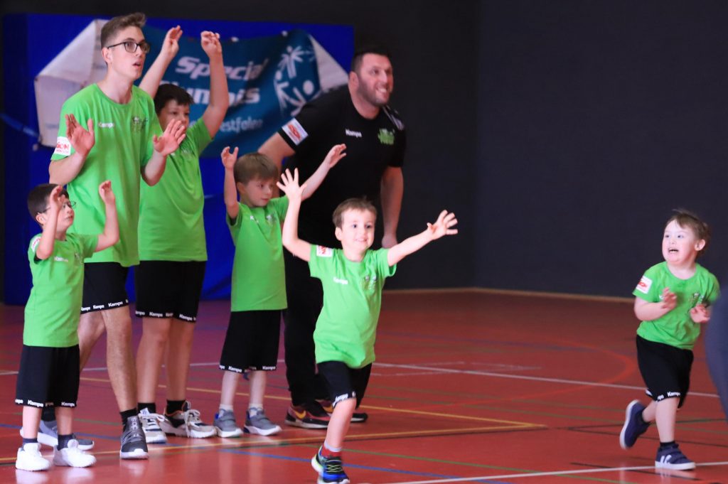 Wenn man Marie Remmert auf die Lucky Frogs anspricht, dann leuchten ihre Augen. Die Torhüterin unserer ersten Damenmannschaft hat schließlich maßgeblich dazu beigetragen, dass die seit September letzten Jahres bestehende Gruppe zu einer absoluten Erfolgsgeschichte wurde. Kinder mit Einschränkungen, die mit Begeisterung an den Übungsstunden teilnehmen, zufriedene Eltern, die endlich ein Betätigungsfeld und qualifizierte Betreuung für ihr Kind gefunden haben. Dank des großen Engagements etlicher HTVer für diese Gruppe wurde es erst möglich, anerkannter Stützpunktverein für Inklusion zu werden. Der Titel, den man als besondere Auszeichnung für unseren Verein verstehen darf, ist mit einer finanziellen Förderung verbunden, und die gilt zunächst einmal für fünf Jahre.