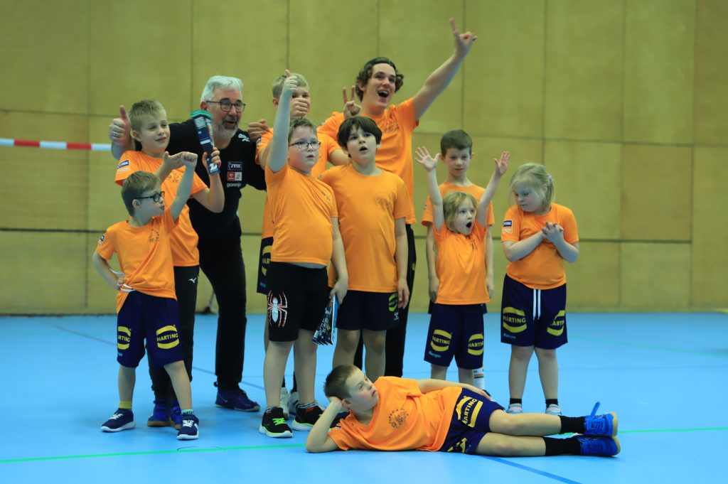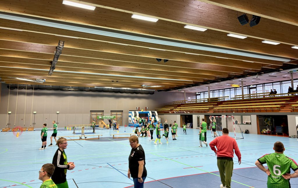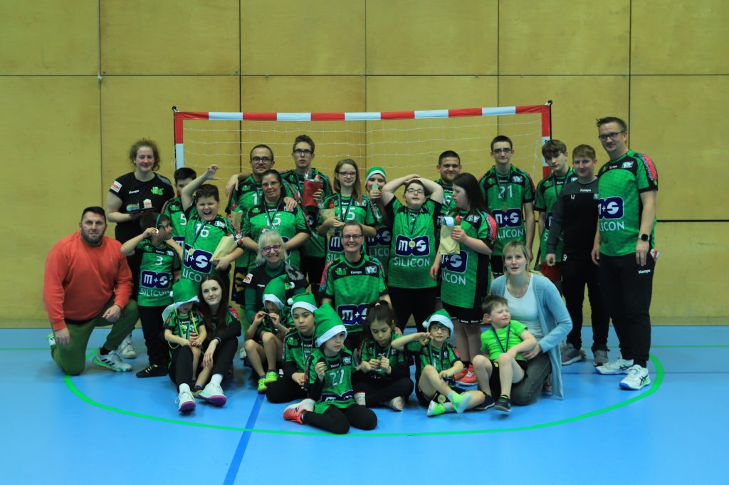 Die Premiere war ein echter Volltreffer. Der Lucky-Frogs-Tag am letzten Samstag, das erste vom HTV selbst ausgerichtete Inklusionsturnier im Grohe-Forum, hat die Erwartungen der Organisatoren voll erfüllt. „Es war ein richtig schöner Tag, alles hat super geklappt“, freute sich Marie Remmert, die Trainerin unserer Lucky Frogs. Sie hatte zwei Teams für das Weihnachtsturnier gemeldet, und als Gäste waren die Eisenbahner Zauberbande, die TuRBO RaBBITS und das Glücksteam TuS Scharnhorst dabei. Aber es ging ja nicht nur um die Turnierspiele, die in einem Drittel der Halle absolviert wurden. Es gab eine Hüpfburg, eine Fotobox, eine Malstation und einen Bewegungsparcours, und wer das muntere Treiben in der Halle sah, der wusste, dass die Mischung stimmte. Viel Lob gab es auch für die Einrichtung eines Ruhebereiches, und dass für die Stärkung zwischendurch an den Verpflegungsständen gesorgt wurde, versteht sich fast von selbst.