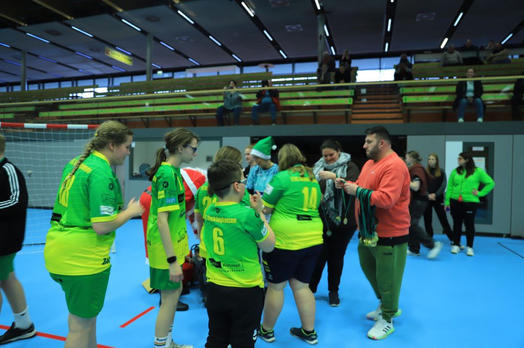 Ein echtes Highlight war gegen Ende des Turniers der Besuch des Weihnachtsmannes. Er hatte kleine Geschenke im Gepäck, und jedes teilnehmende Kind erhielt auch eine Medaille. „Ehrlich gesagt habe ich in den Tagen vor dem Turnier schlecht geschlafen, weil ich ziemlich nervös war. Aber es haben so viele Leute geholfen, es waren so viele hoch motivierte Eltern mit dabei, dass alles wirklich reibungslos gelaufen ist“, meinte Marie Remmert, die bereits etliche positive Rückmeldungen der Gastmannschaften erhalten hat.